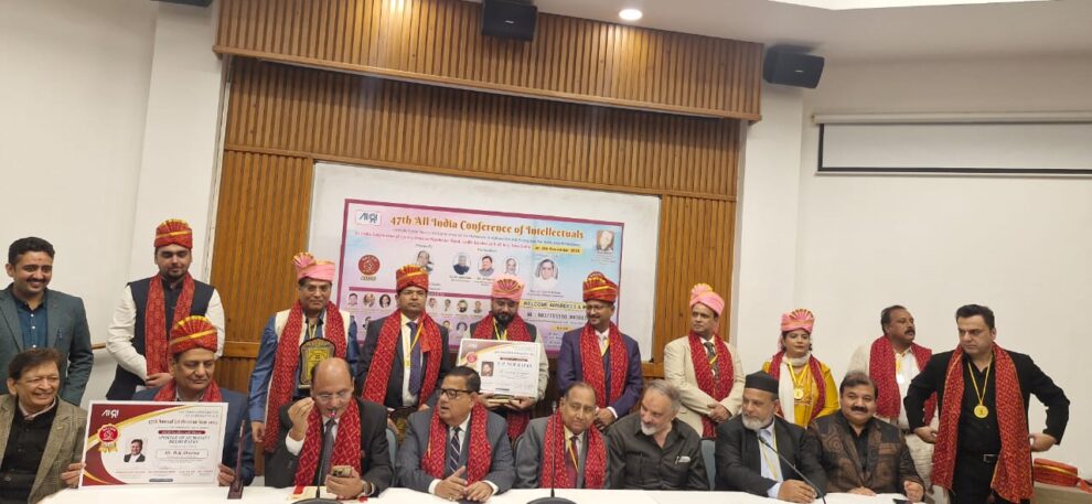 नई दिल्ली।मैक्समुलर रोड़ स्थित इण्डिया इंटरनेशनल सेंटर एनेक्सी में ऑल इंडिया कॉन्फ्रेंस ऑफ इंटलेक्टुअलस (ए.आई.सी.ओ.आई.) की 47वीं ऑल इंडिया कॉन्फ्रेंस अत्यन्त धूमधाम से सम्पन्न हुई।जिसमें अखिल भारतीय आयुर्विज्ञान संस्थान (एम्स), नई दिल्ली के प्रख्यात मनोचिकित्सक प्रो. (डॉ.) राजेश सागर को मनोचिकित्सा के क्षेत्र में विश्व स्तर पर उत्कृष्ट व प्रशंसनीय योगदान देने हेतु “दिल्ली रत्न” की मानद उपाधि से अलंकृत किया गया।