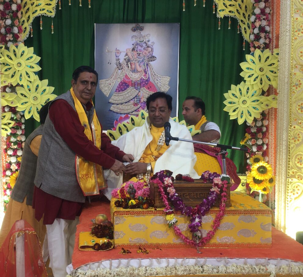 कार्यक्रम के अंतर्गत ब्रज सेवा संस्थान के अध्यक्ष “यूपी रत्न” डॉ. गोपाल चतुर्वेदी ने व्यासपीठ का पूजन अर्चन करके संत श्री प्रेम धन लालन जी महाराज का उनके द्वारा धर्म व अध्यात्म के क्षेत्र में की गई अविस्मरणीय सेवाओं के लिए सम्मान किया।