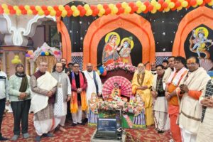 वृन्दावन।वाराह घाट-परिक्रमा मार्ग स्थित श्रीगौतम ऋषि आश्रम में चल रहा निंबार्क संस्कृत महाविद्यालय एवं गौतम ऋषि आश्रम के संस्थापक सन्त शिरोमणि पण्डित बिहारी दास त्यागी महाराज का अष्ट-दिवसीय वार्षिक महोत्सव अनंतश्री विभूषित मुकुंद शरण बाबा महाराज एवं श्रीमहंत सर्वेश्वर शरण महाराज (मामाजी) के पावन सानिध्य में अत्यन्त श्रद्धा एवं धूमधाम के साथ सम्पन्न हुआ।जिसके अंतर्गत प्रख्यात भागवताचार्य पण्डित रमेश चंद्र शास्त्री महाराज के द्वारा समस्त भक्तों-श्रद्धालुओं को सप्तदिवसीय श्रीनिंबार्क भागवत कथा श्रवण कराई गई।इसके अलावा प्रख्यात रासाचार्य स्वामी भुवनेश्वर वशिष्ठ के निर्देशन में रासलीला का अत्यन्त नयनाभिराम व चित्ताकर्षक मंचन किया गया तथा सरस भजन संध्या आयोजित हुई।जिसमें प्रख्यात भजन गायक बनवारी महाराज (मुम्बई) के द्वारा ठाकुरश्री राधा कृष्ण की महिमा से ओत-प्रोत भजनों का संगीत की मृदुल स्वर लहरियों के मध्य गायन किया गया।इससे पूर्व महावाणी पाठ किया गया।साथ ही निंबार्क संप्रदाय के संतो के द्वारा मंगल बधाई समाज गायन भी हुआ।