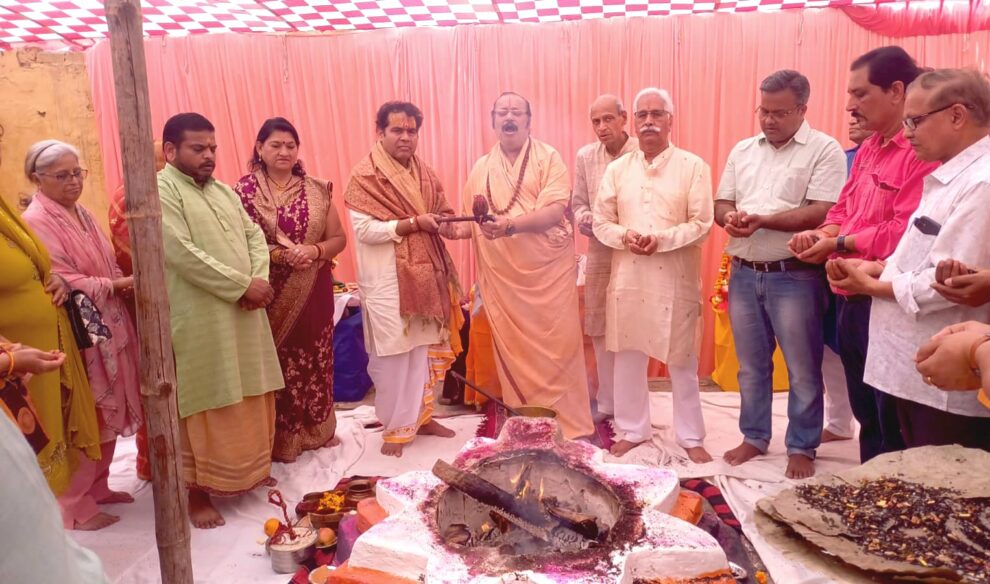 वृन्दावन।गोपीनाथ बाज़ार स्थित श्रीकृष्ण काली पीठ में चैत्र नवरात्रि के उपलक्ष्य में चल रहे शतचंडी महायज्ञ की पूर्णाहुति श्रीकृष्ण काली पीठाधीश्वर डॉ. केशवाचार्य महाराज के पावन सानिध्य में वैदिक मंत्रोच्चार के मध्य सम्पन्न हुई।जिसमें वैदज्ञ विप्रों एवं भक्तों व श्रद्धालुओं ने अत्यंत विधि-विधान से अपनी आहुतियां दीं।साथ ही 500 से भी अधिक कन्याओं व लांगुराओं का पूजन-अर्चन करके उन्हें भोजन प्रसाद ग्रहण करा कर उन्हें उपहार वितरित किए गए।